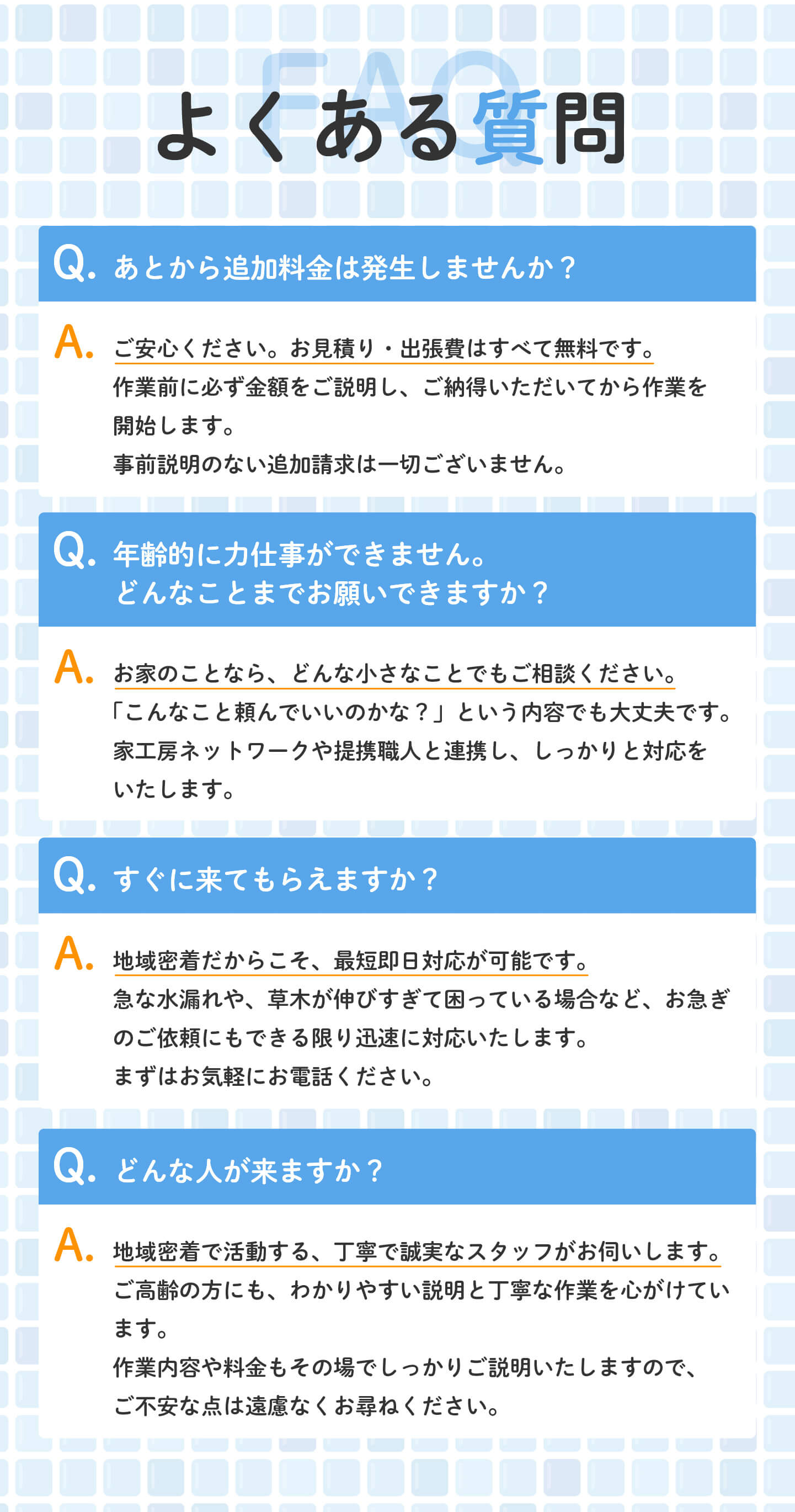 | 事業内容 | 住宅メンテナンスサービス、 地域密着の住まいサポート |